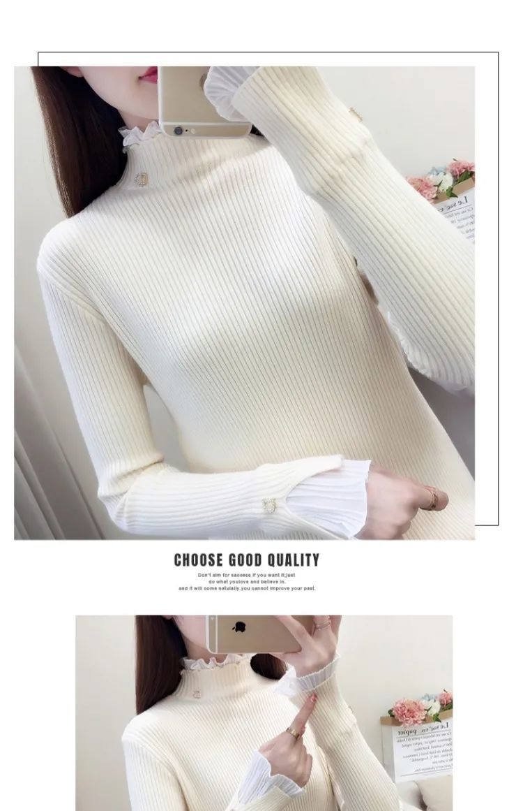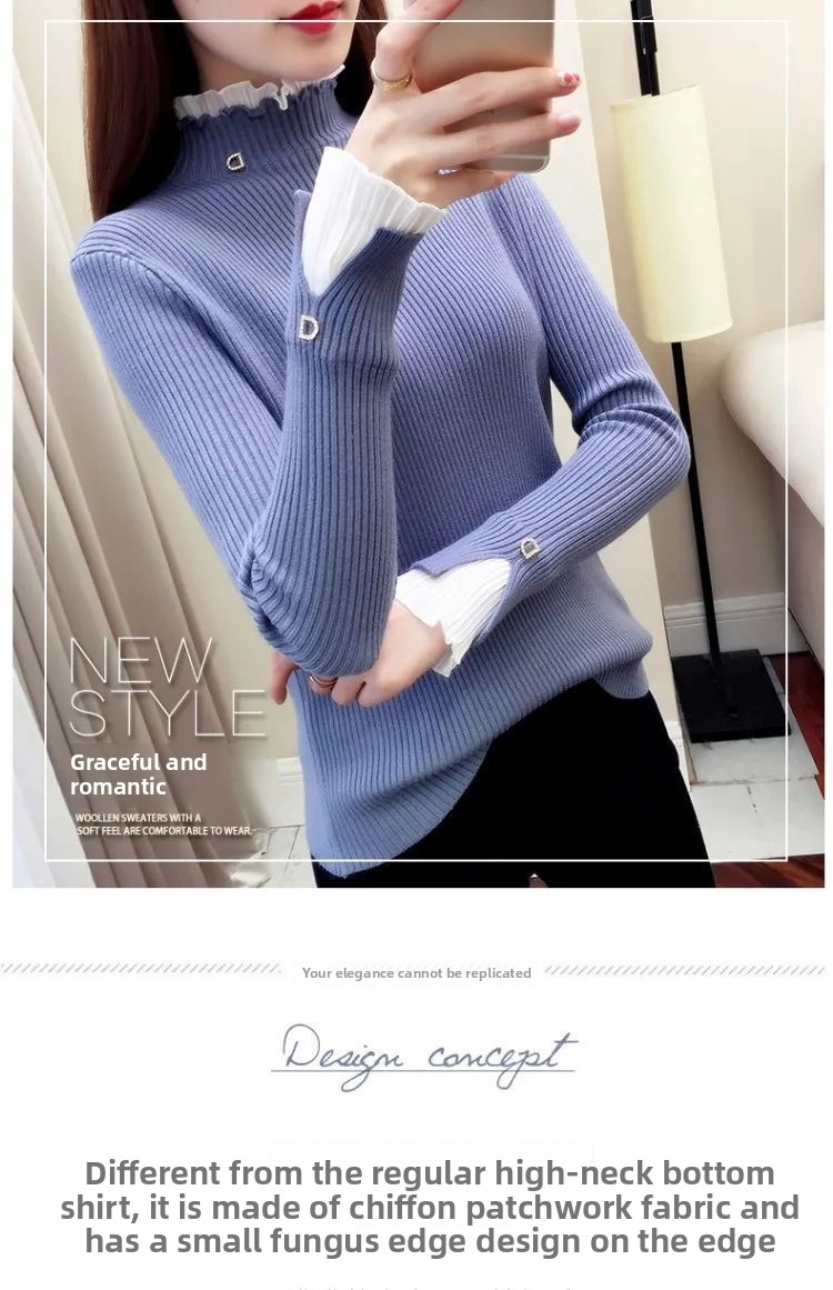 Fashionable Design: Semi-high neck and bell sleeves for a stylish look.