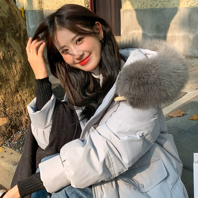 Big Fur Collar: Stylish fox fur collar adds a luxurious touch.